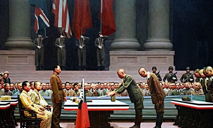 9月9日,在南京,中国战区日军总司令冈村宁次签了受降书,中国战场的日军开始缴械。整个过程,日本从法律上彻底投降了,国家行为完成了,战争关系就此终止。